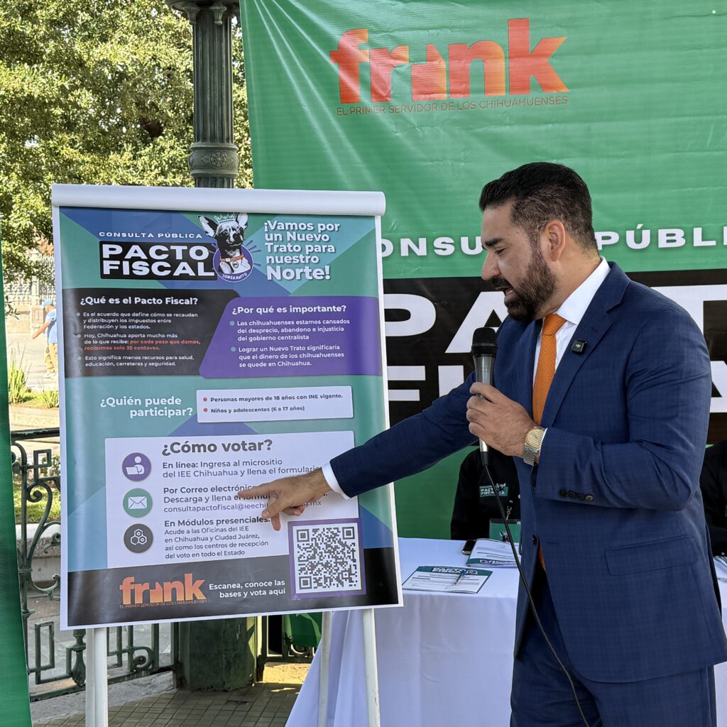 “Un Nuevo Trato Fiscal es ahora o nunca para Chihuahua. No podemos seguir manteniendo un régimen centralista que nos exprime y nos margina. Hoy es el momento de defender lo que legítimamente nos corresponde y de exigir que el dinero de los chihuahuenses se quede en Chihuahua”, declaró.